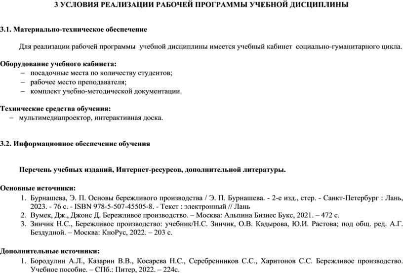 Рабочая программа учебной дисциплины СГЦ.05. Основы бережливого производства разработана на основе требований: