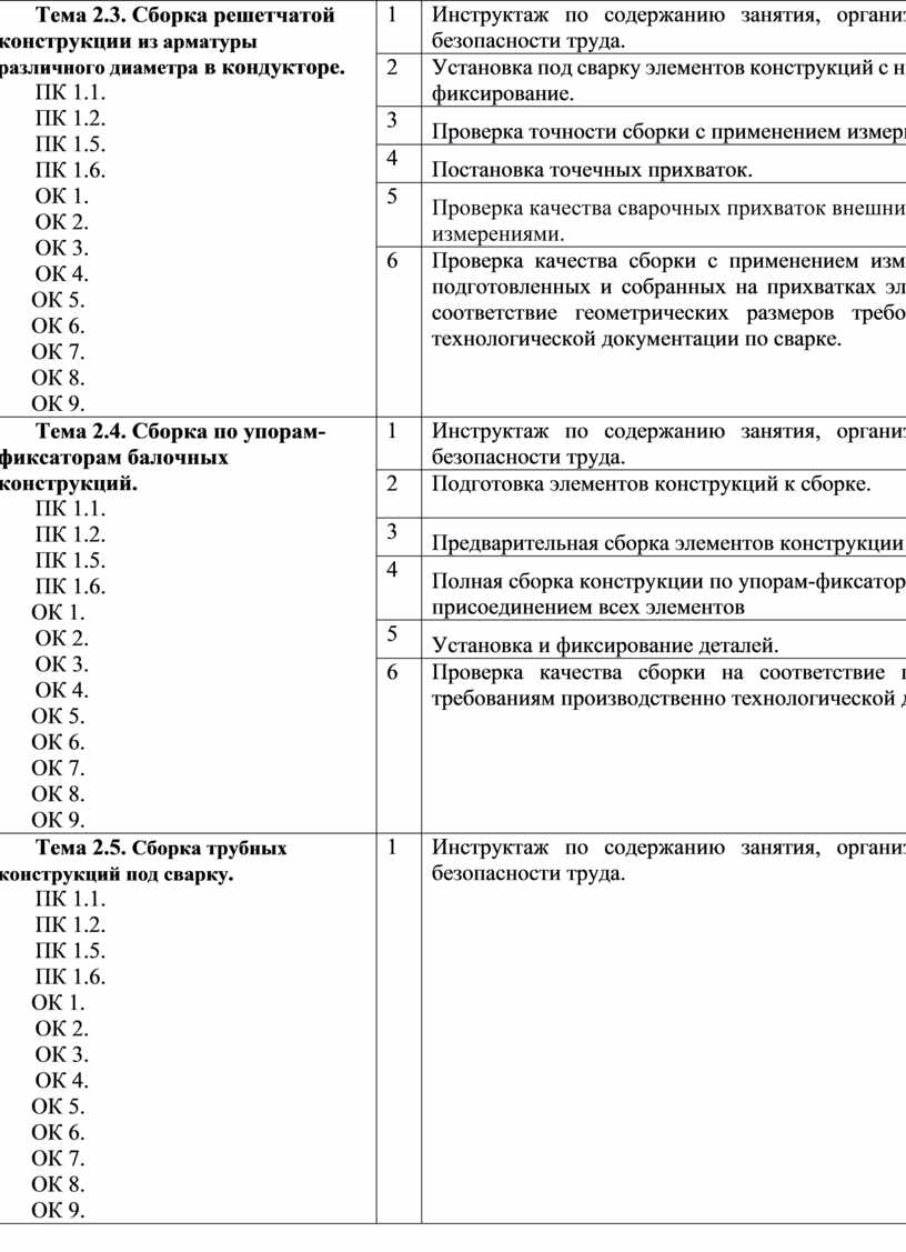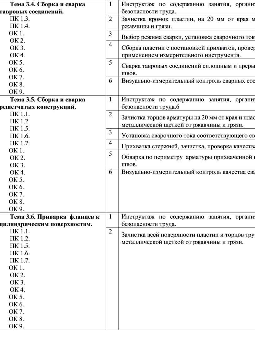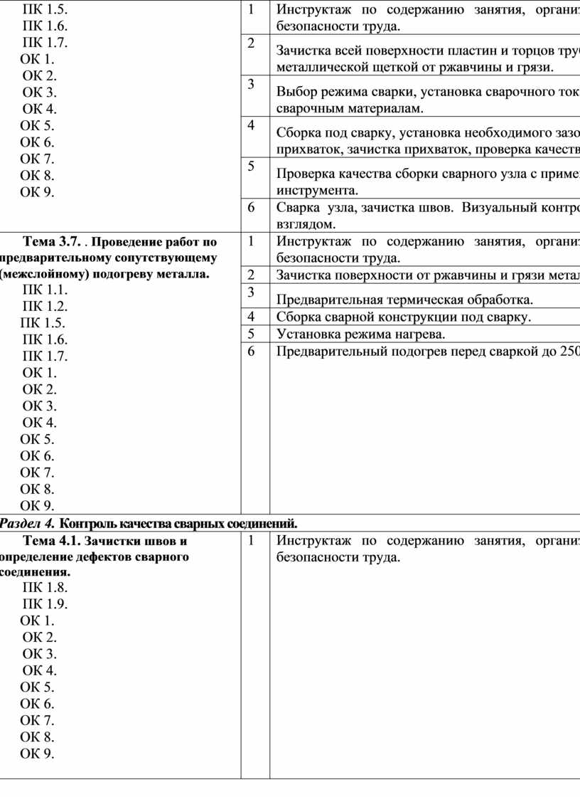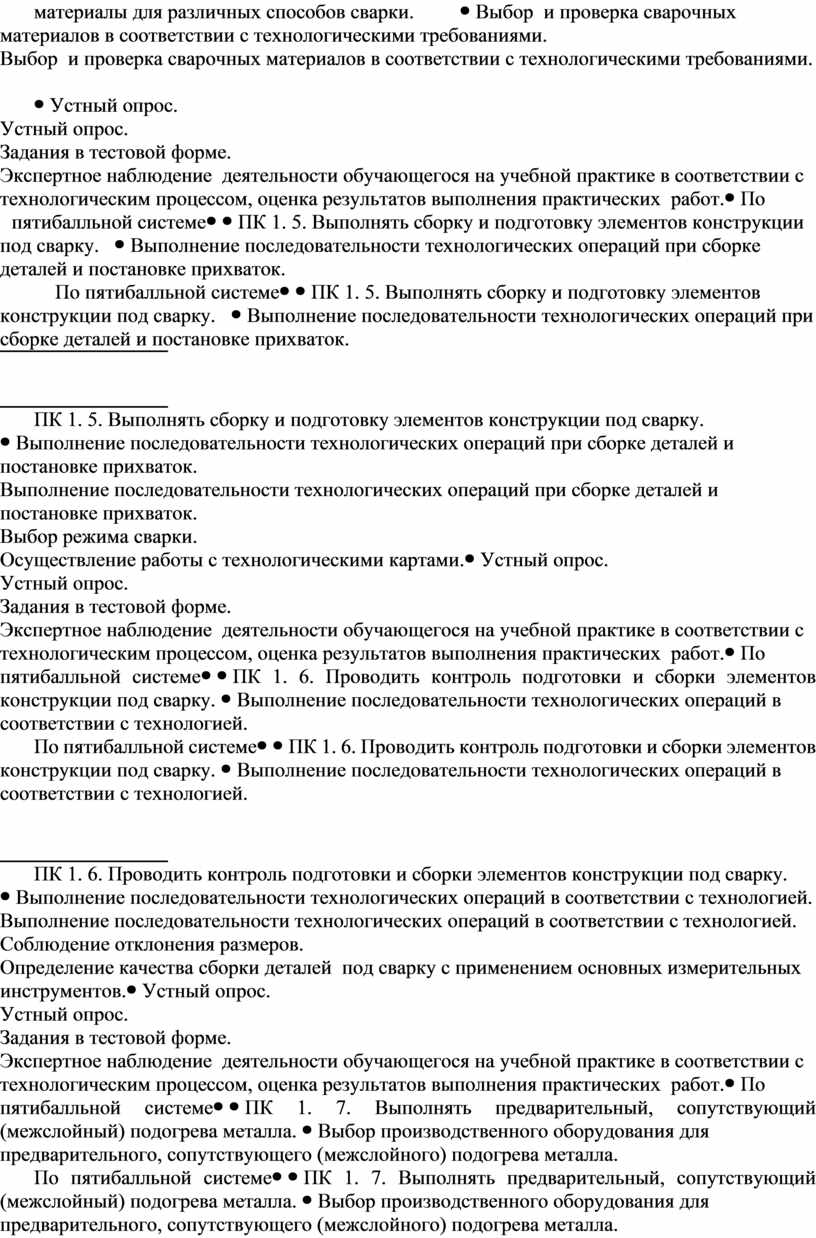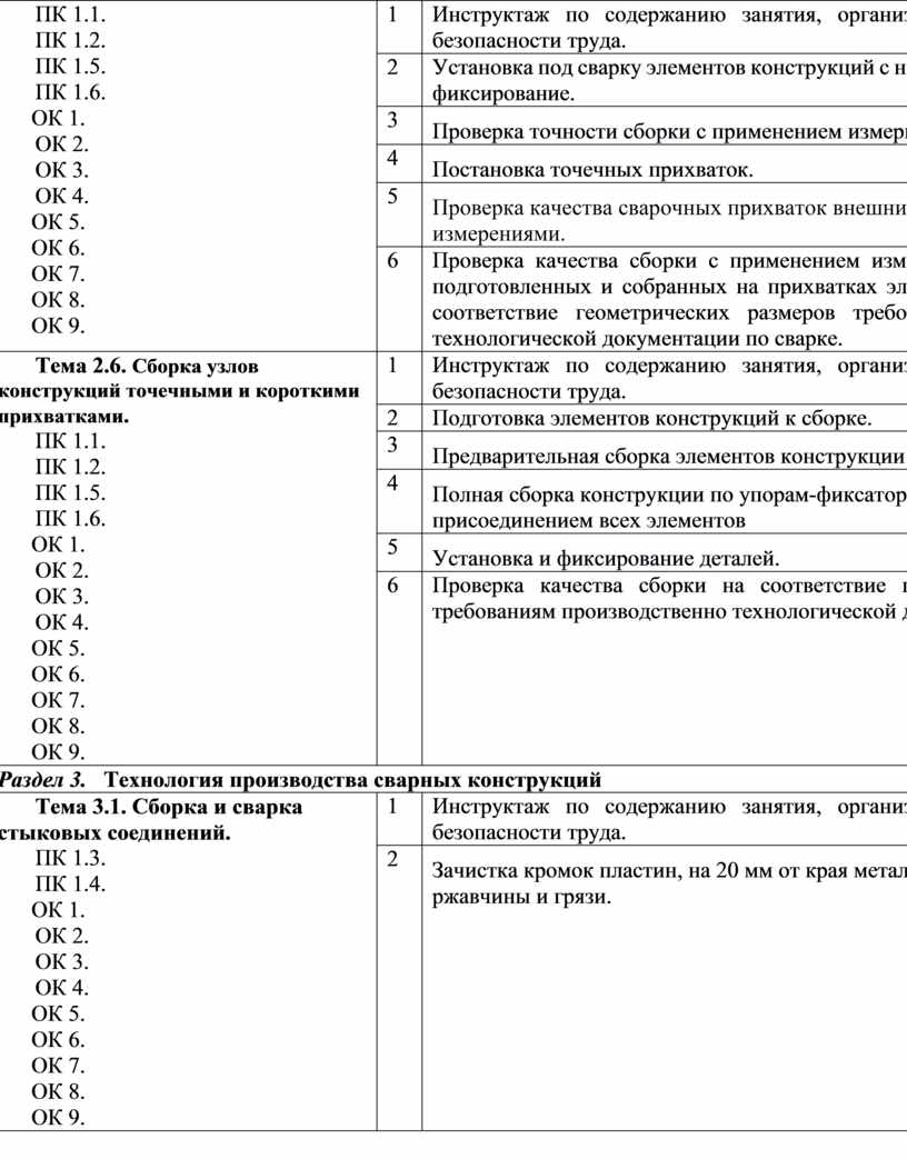 ПК 1. 6. Проводить контроль подготовки и сборки элементов конструкции под сварку. |