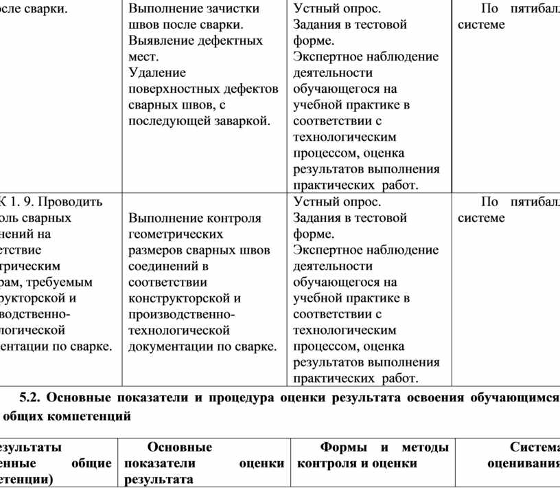 ПК 1.9. Проводить контроль сварных соединений на соответствие геометрическим размерам, требуемым конструкторской и производственно-технологической документации по сварке.