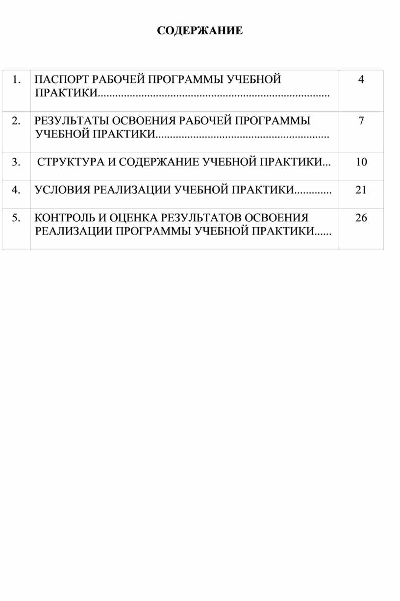 ПАСПОРТ РАБОЧЕЙ ПРОГРАММЫ УЧЕБНОЙ ПРАКТИКИ................................................................................ |
