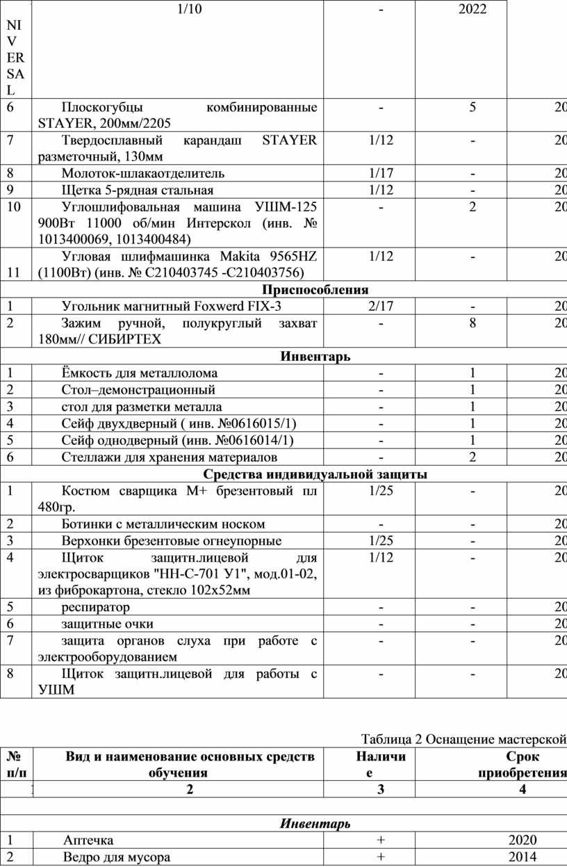 Личный технологический рабочий инструмент мастера п/о (комплект) |