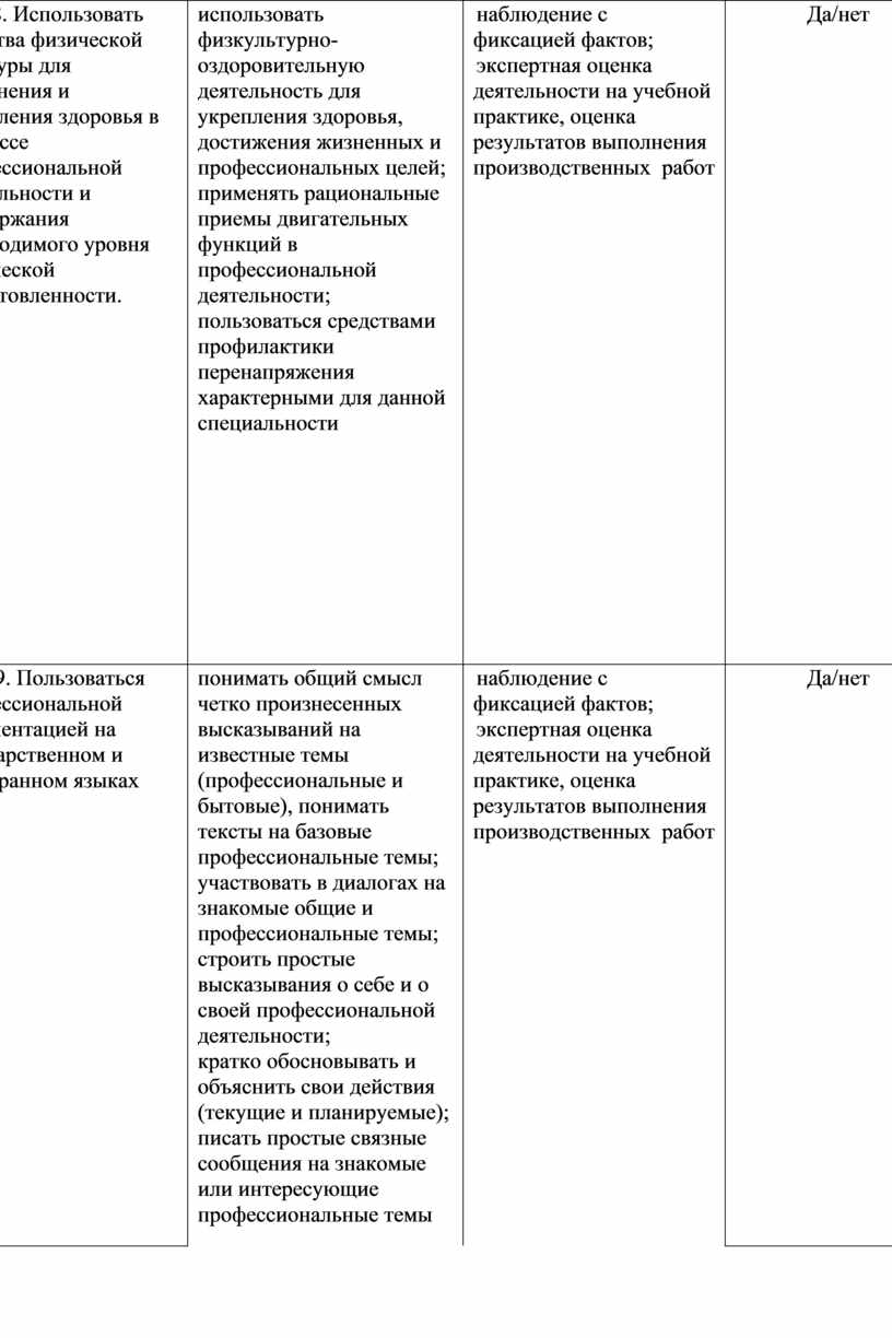ОК 08. Использовать средства физической культуры для сохранения и укрепления здоровья в процессе профессиональной деятельности и поддержания необходимого уровня физической подготовленности. |