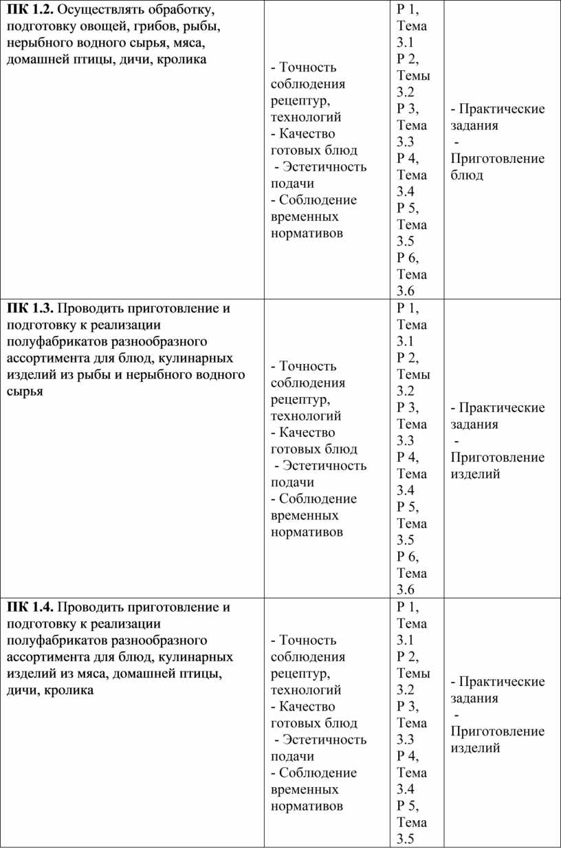 ПК 1.2. Осуществлять обработку, подготовку овощей, грибов, рыбы, нерыбного водного сырья, мяса, домашней птицы, дичи, кролика |