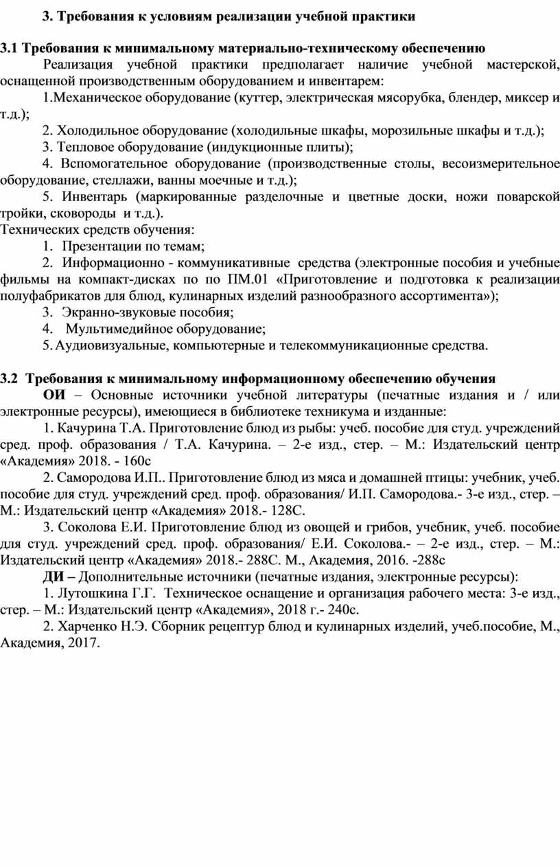 ПМ.01. Приготовление и подготовка к реализации полуфабрикатов для блюд, кулинарных изделий разнообразного ассортимента. |