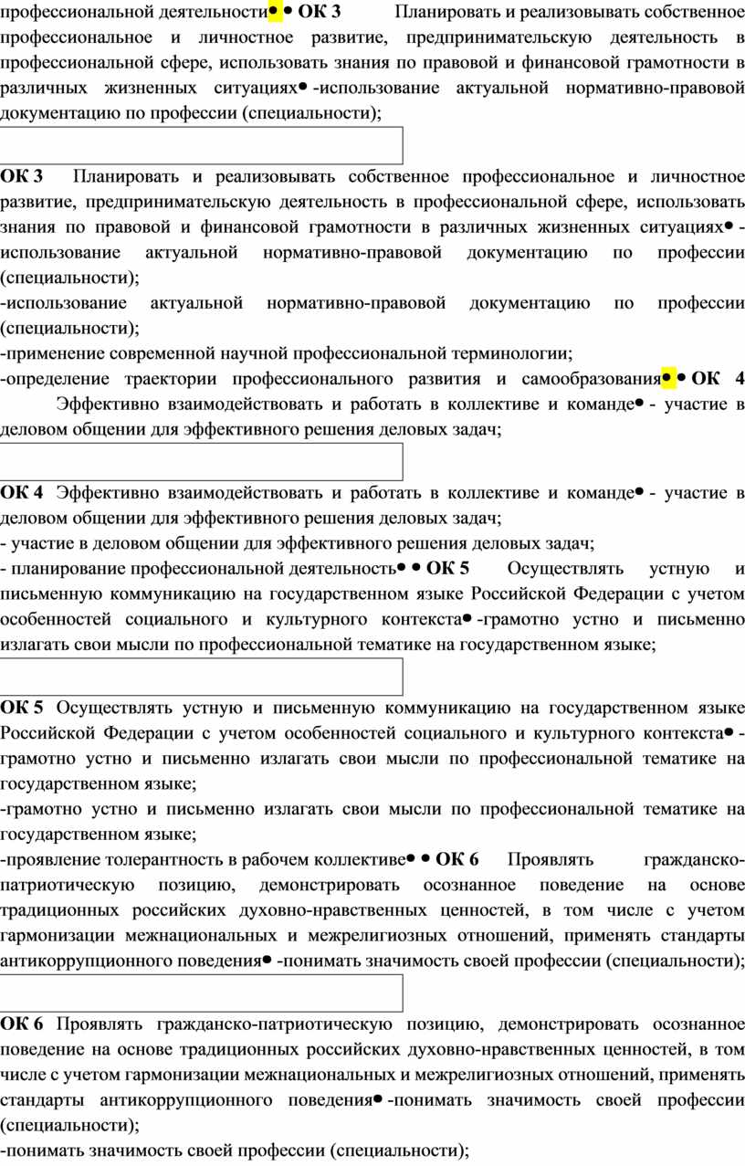 -использование актуальной нормативно-правовой документацию по профессии (специальности); -применение современной научной профессиональной терминологии; -определение траектории профессионального развития и самообразования |