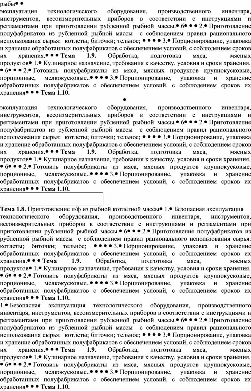 Тема 1.9. Обработка, подготовка мяса, мясных продуктов |