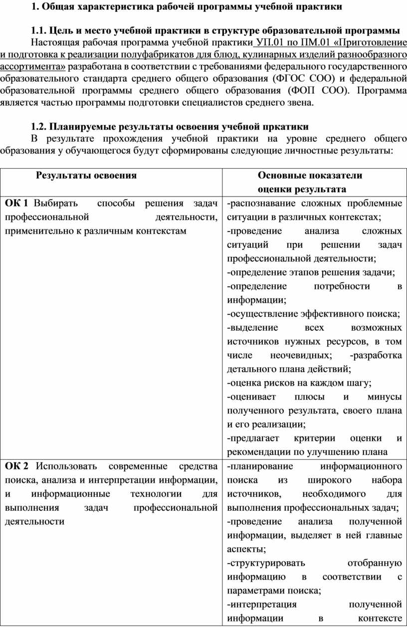 Настоящая рабочая программа учебной практики УП.01 по ПМ.01 «Приготовление и подготовка к реализации полуфабрикатов для блюд, кулинарных изделий разнообразного ассортимента» разработана в соответствии с требованиями федерального государственного образовательного стандарта среднего общего образования (ФГОС СОО) и федеральной образовательной программы среднего общего образования (ФОП СОО). Программа является частью программы подготовки специалистов среднего звена.