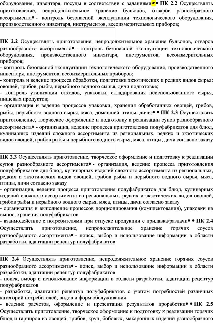 ПК 2.2. Осуществлять приготовление, непродолжительное хранение бульонов, отваров разнообразного ассортимента |