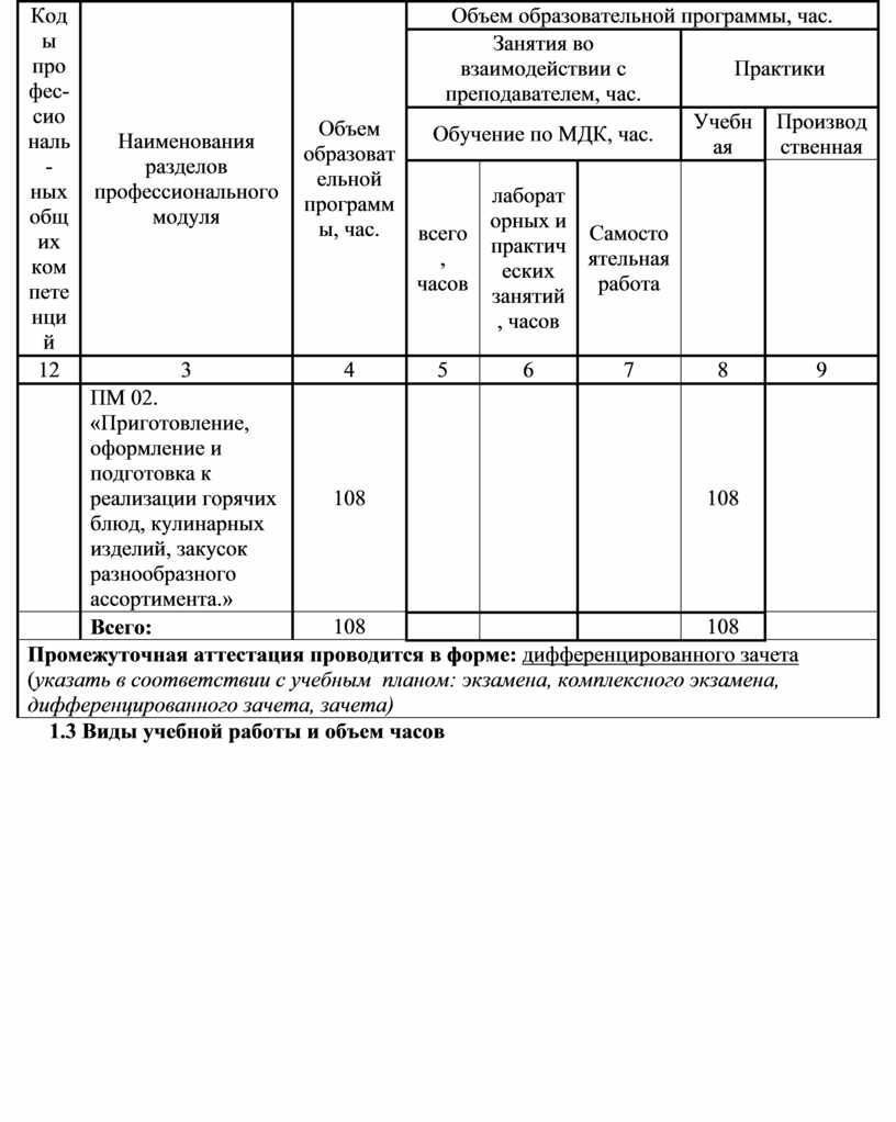 1.3 Виды учебной работы и объем часов