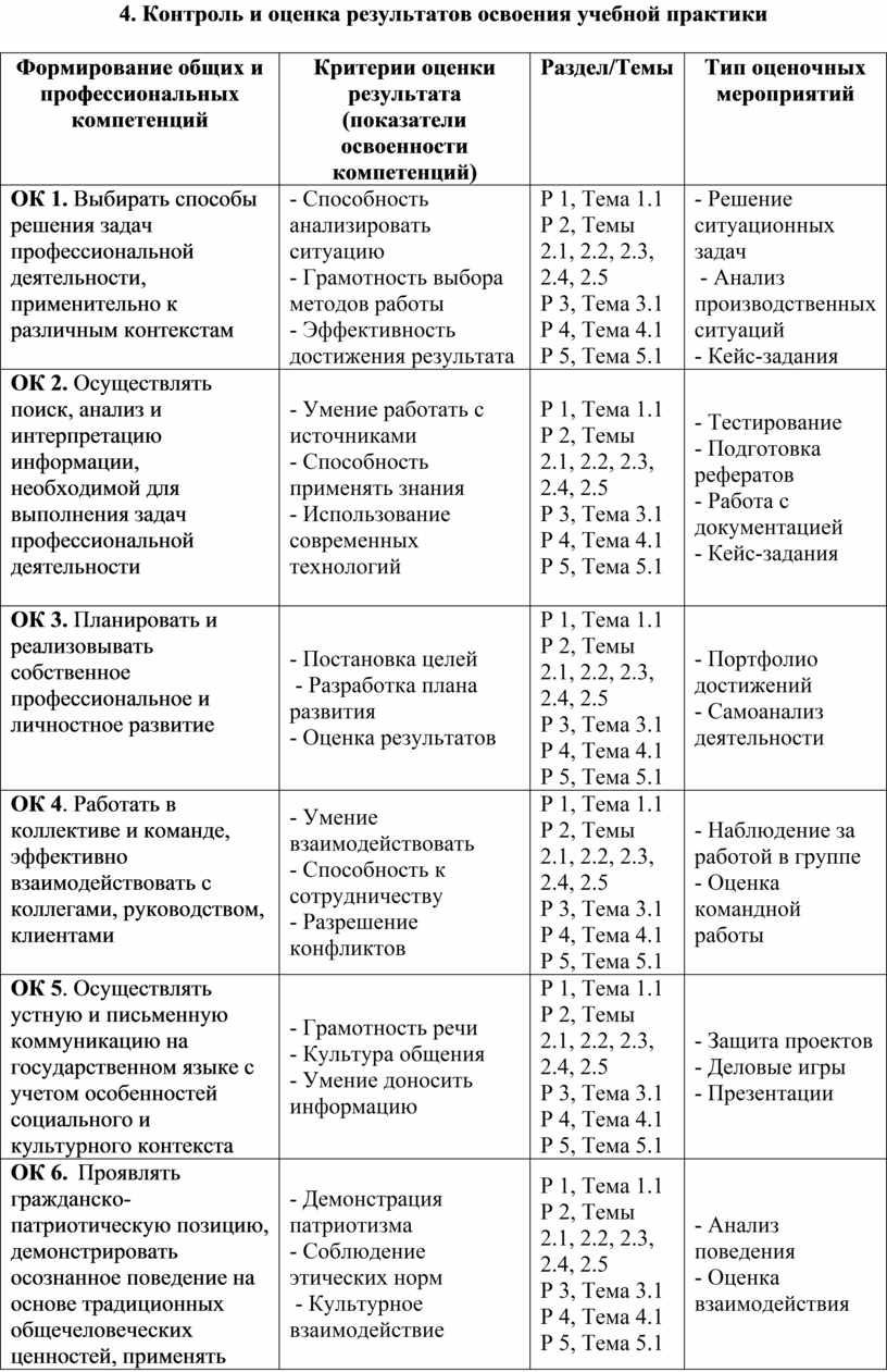 4. Контроль и оценка результатов освоения учебной практики