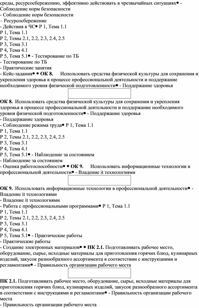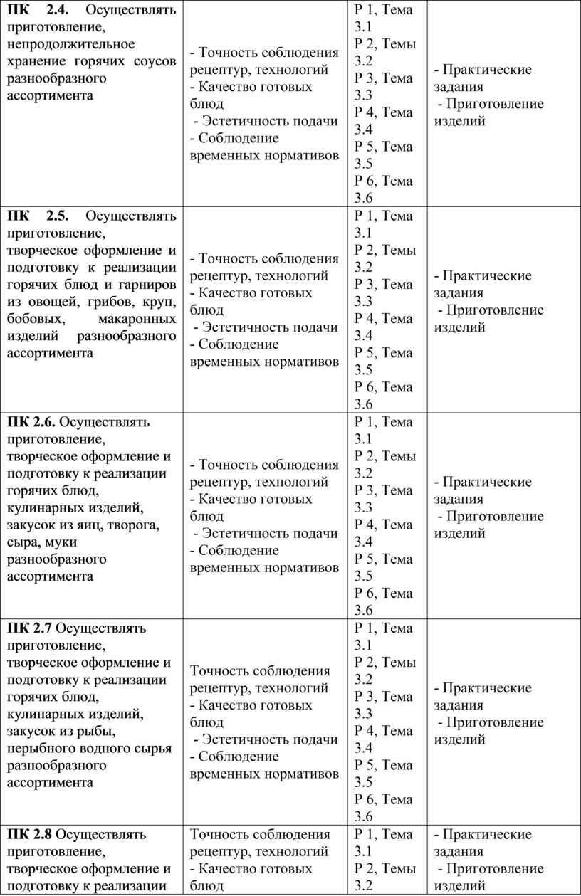 ПК 2.1. Подготавливать рабочее место, оборудование, сырье, исходные материалы для приготовления горячих блюд, кулинарных изделий, закусок разнообразного ассортимента в соответствии с инструкциями и регламентами |