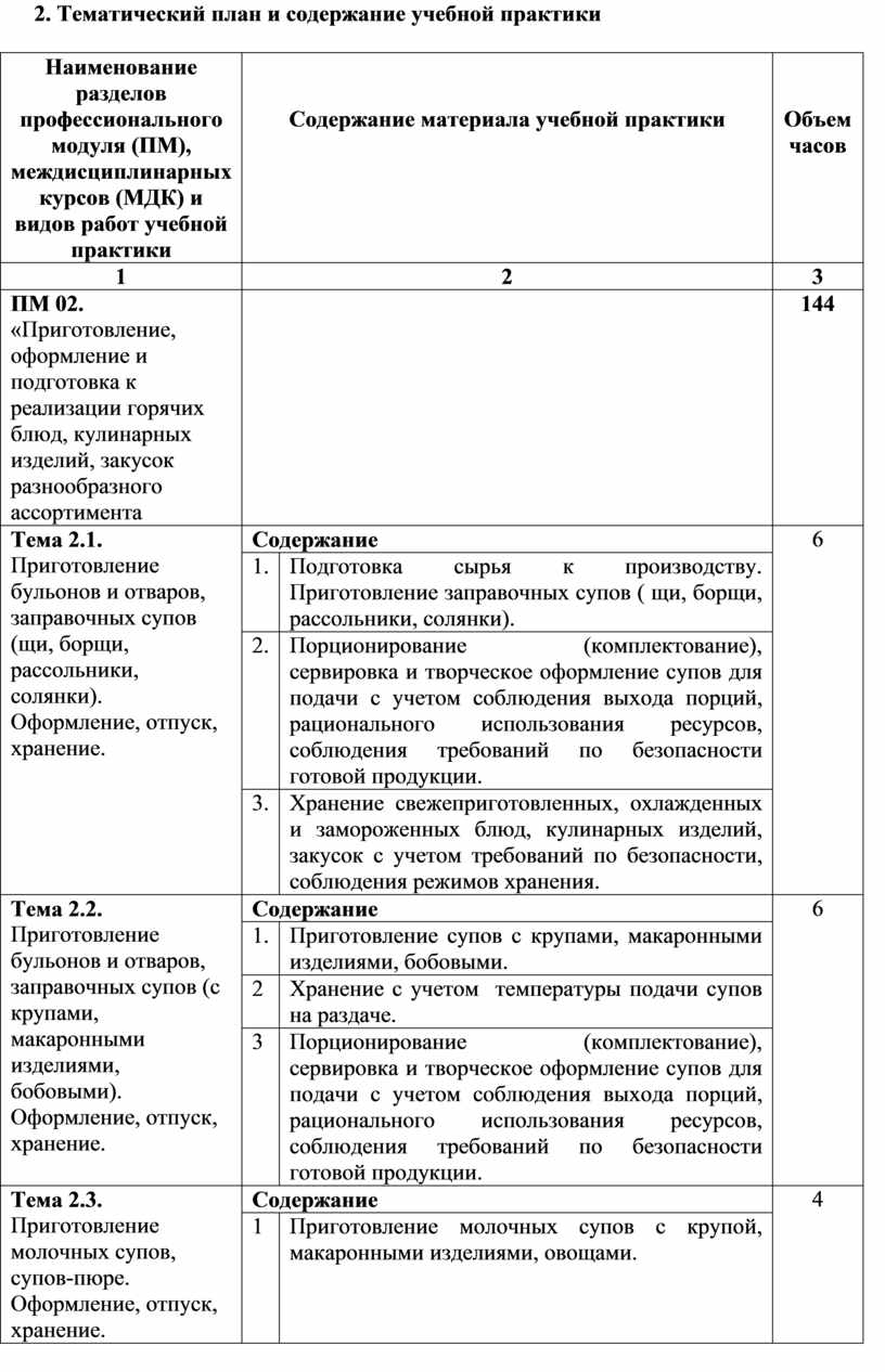 ПМ 02. «Приготовление, оформление и подготовка к реализации горячих блюд, кулинарных изделий, закусок разнообразного ассортимента.» |