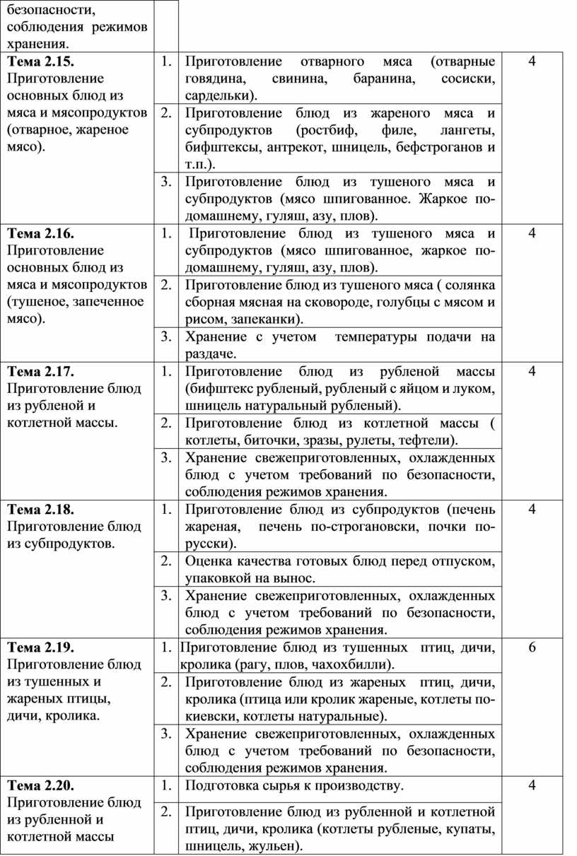 Тема 2.15. Приготовление основных блюд из мяса и мясопродуктов (отварное, жареное мясо). |