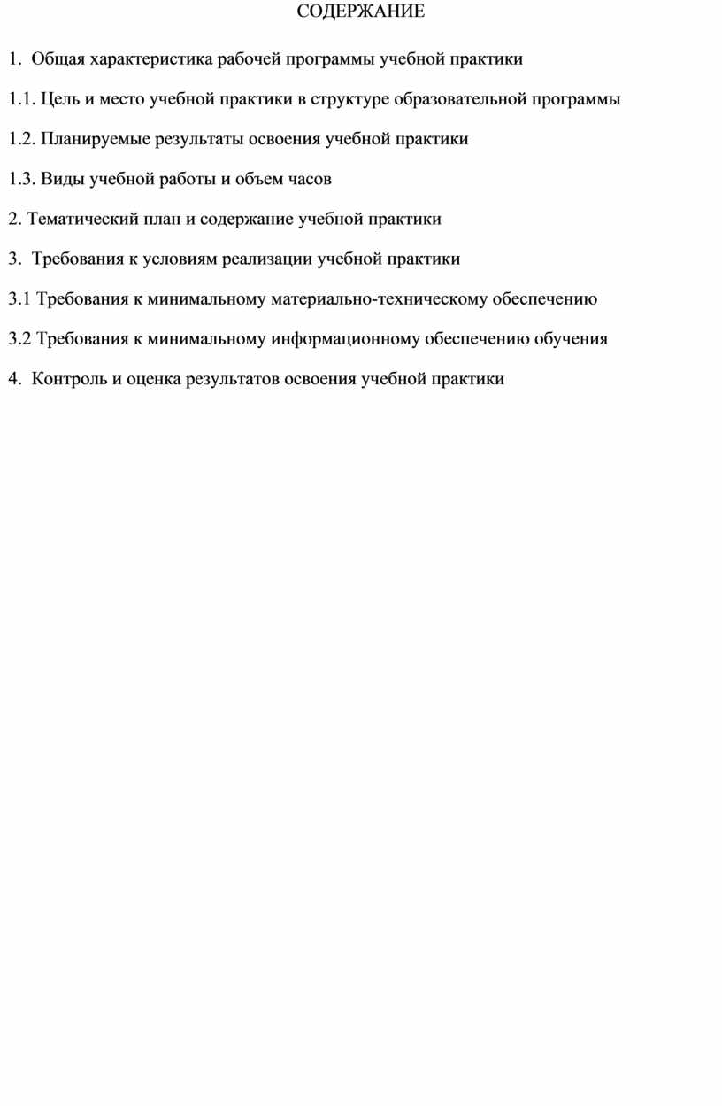 1. Общая характеристика рабочей программы учебной практики |