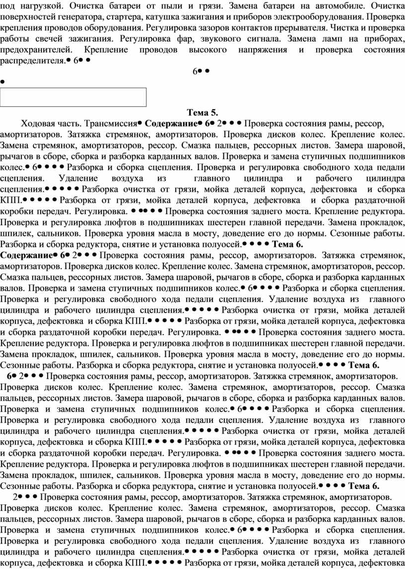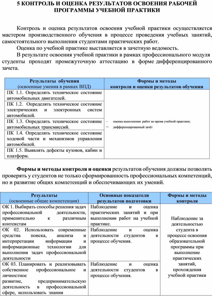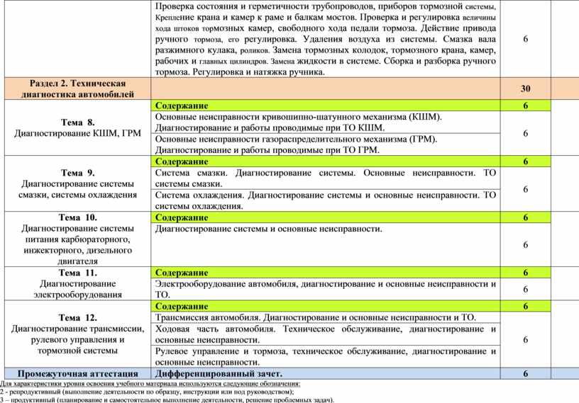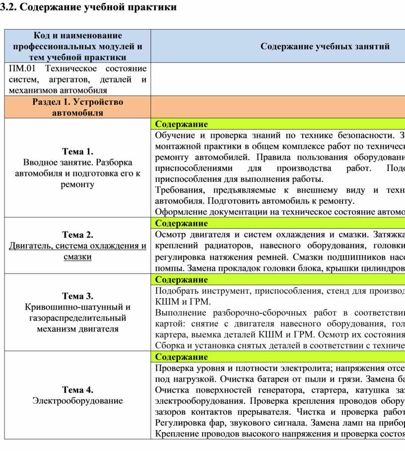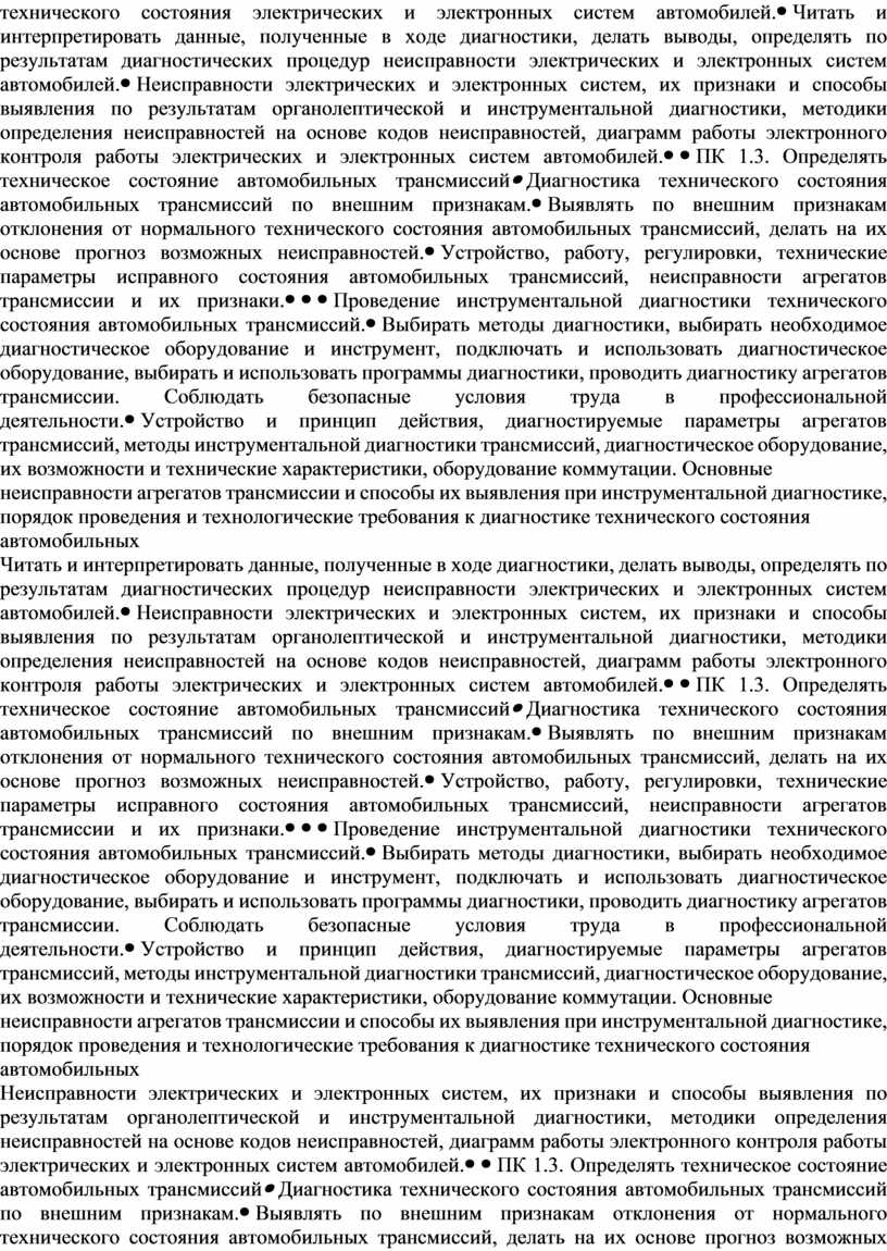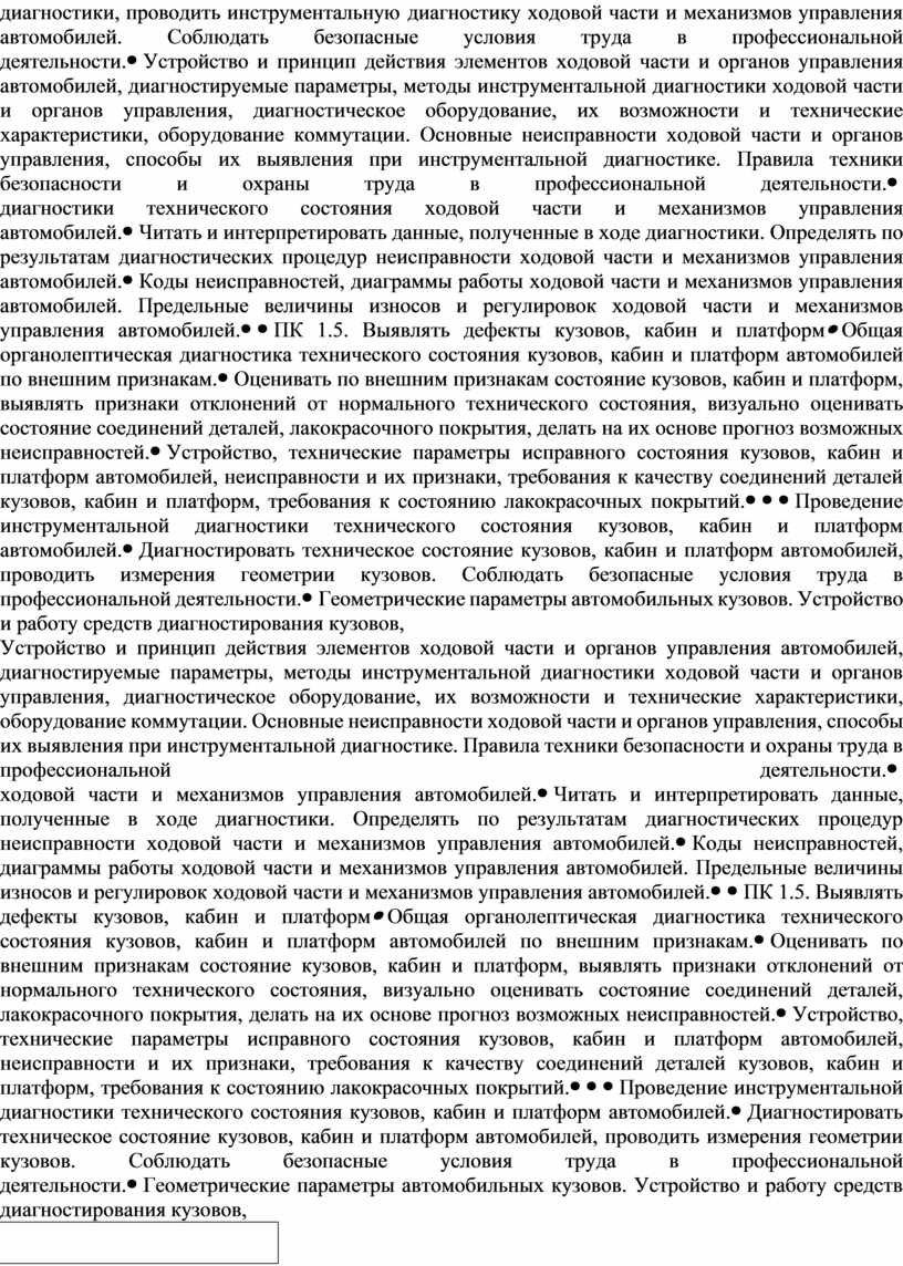 - рабочей программы ПМ.01 Техническое состояние систем, агрегатов, деталей и механизмов автомобиля.