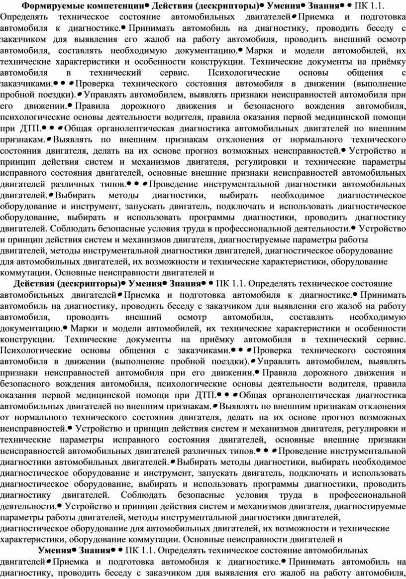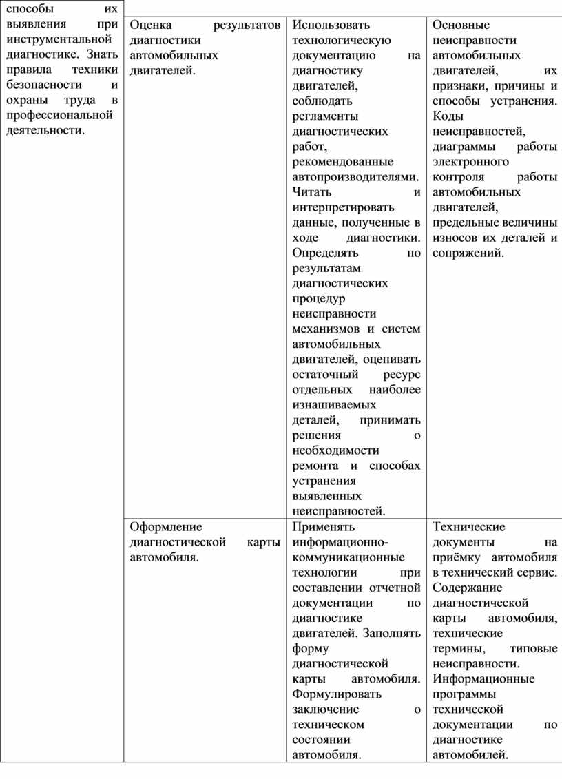 ПК 1.1. Определять техническое состояние автомобильных двигателей. |