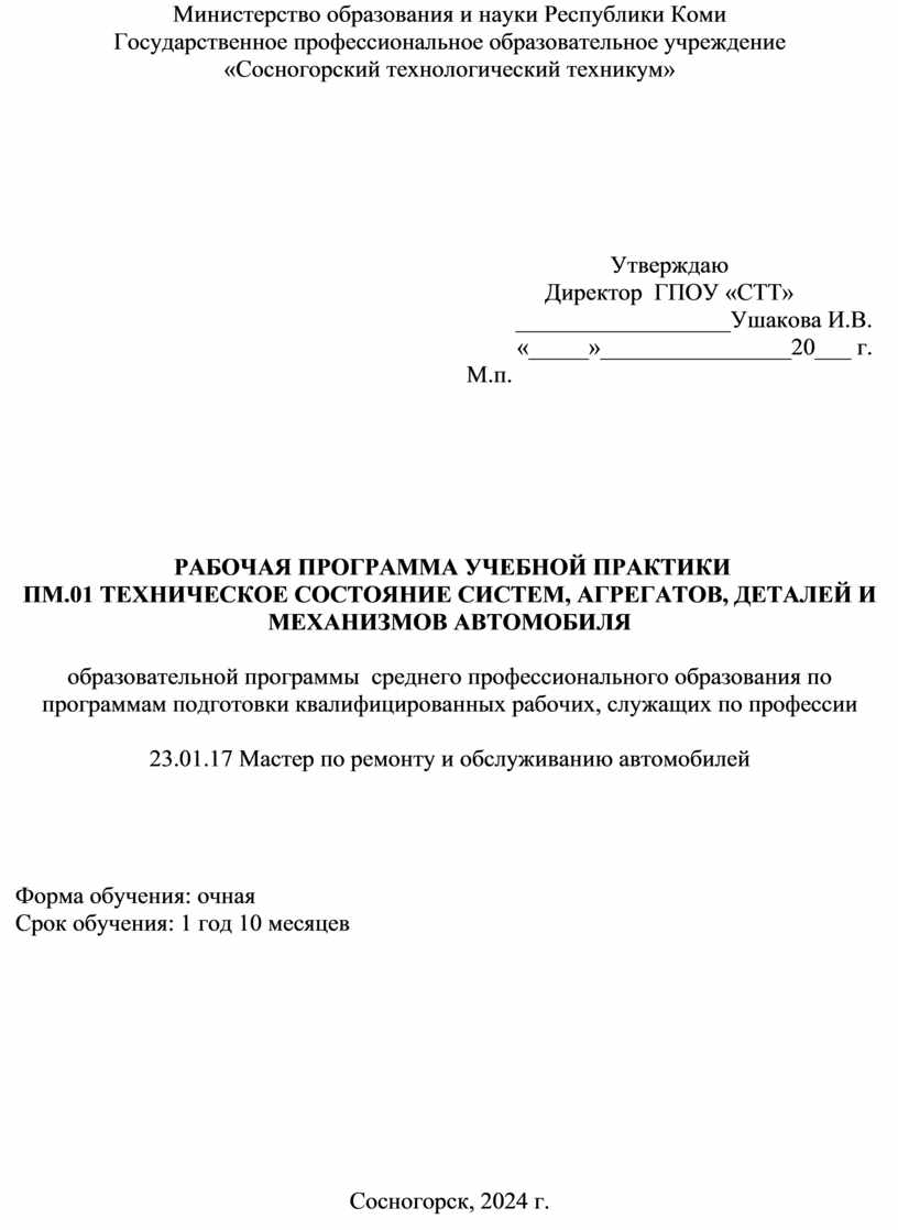 Утверждаю Директор ГПОУ «CТТ» __________________Ушакова И.В. «_____»________________20___ г. М.п. |