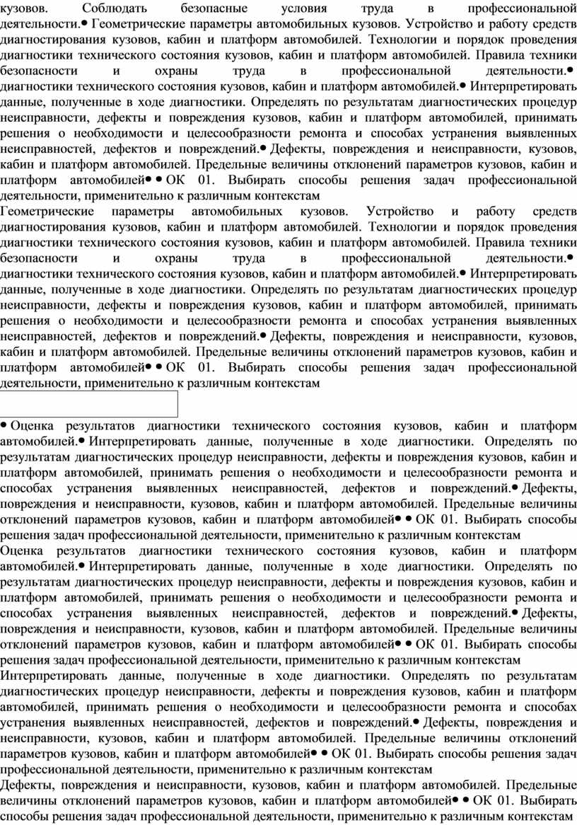 ПК 1.5. Выявлять дефекты кузовов, кабин и платформ. |
