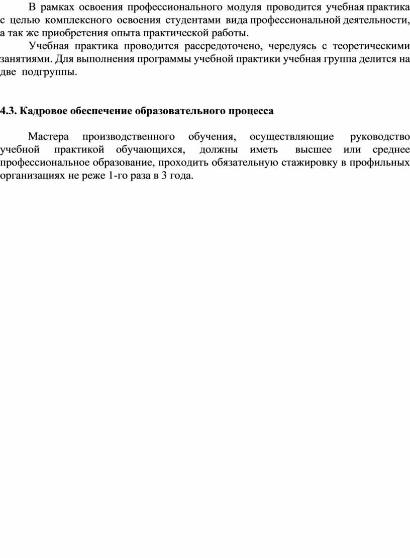 Учебная практика проводится мастерами производственного обучения или преподавателями профессионального цикла.