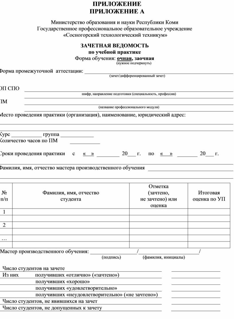 ПРИЛОЖЕНИЕ А (Зачетная ведомость)…………….……………………… |