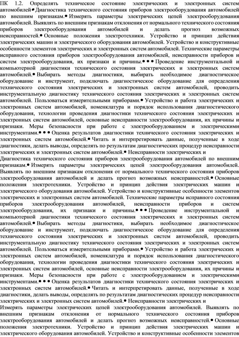 ПК 1.2. Определять техническое состояние электрических и электронных систем автомобилей. |