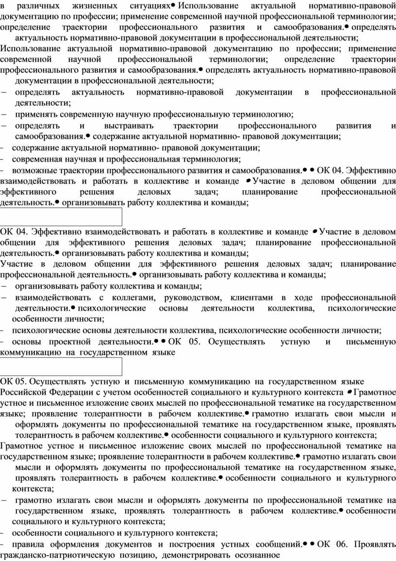 ОК 05. Осуществлять устную и письменную коммуникацию на государственном языке с учетом особенностей социального и культурного контекста |