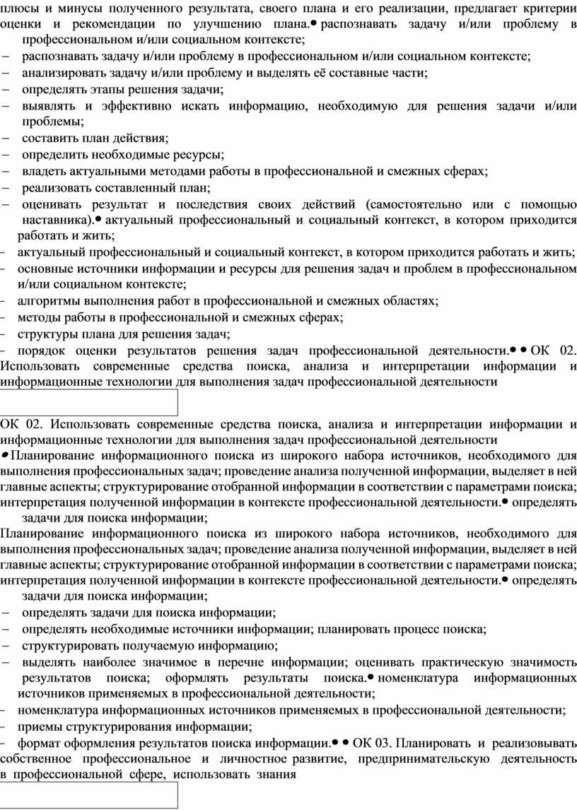 ОК 02. Использовать современные средства поиска, анализа и интерпретации информации и информационные технологии для выполнения задач профессиональной деятельности |