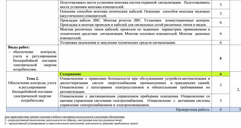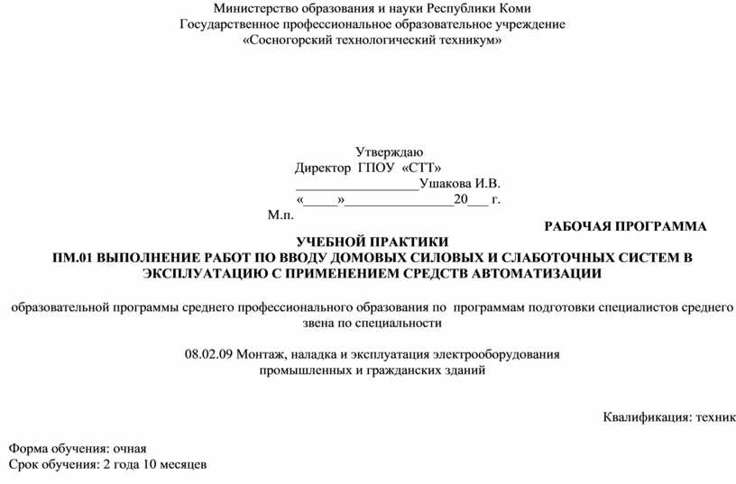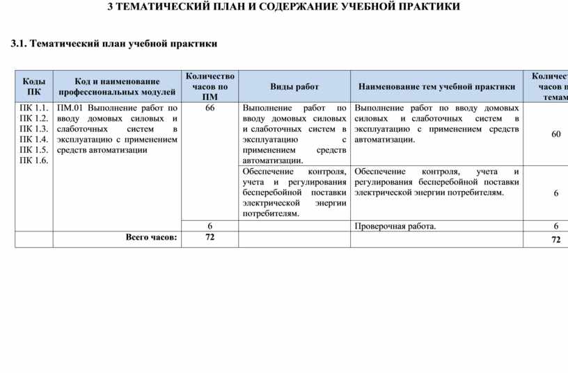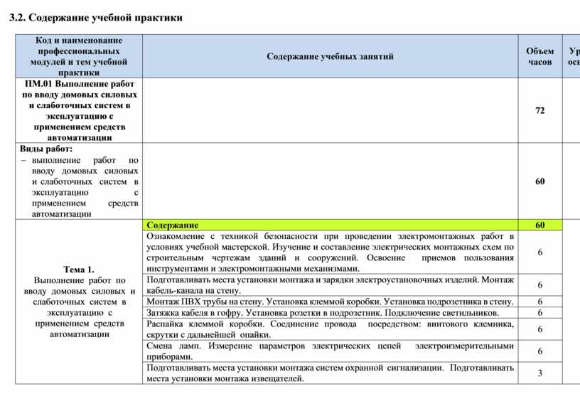 - рабочей программы ПМ.01 Выполнение работ по вводу домовых силовых и слаботочных систем в эксплуатацию с применением средств автоматизации.