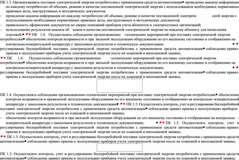 ПК 1.4. Осуществлять соблюдение организационно-технических мероприятий при поставке электрической энергии потребителям |