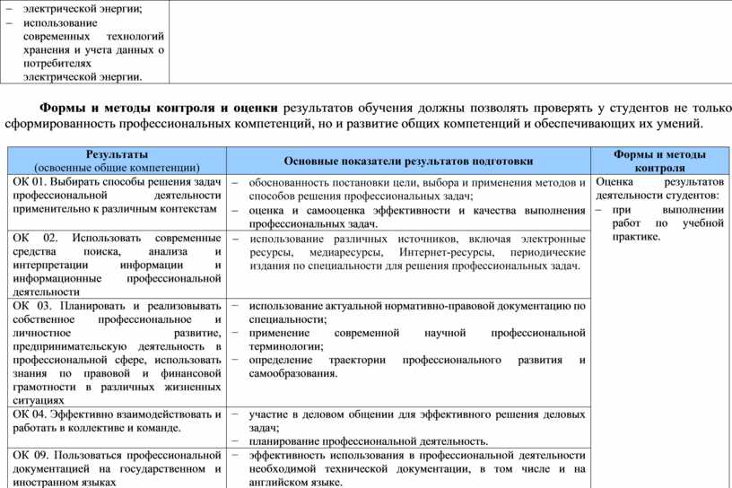 − использование актуальной нормативно-правовой документацию по специальности; − применение современной научной профессиональной терминологии; − определение траектории профессионального развития и самообразования. |
