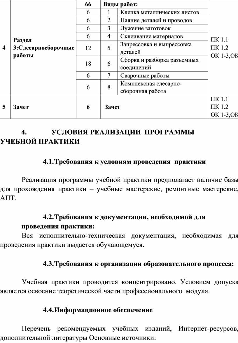 4. Условия реализации программы учебной практики 12