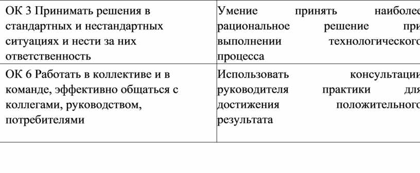 ОК 6 Работать в коллективе и в команде, эффективно общаться с коллегами, руководством, потребителями |
