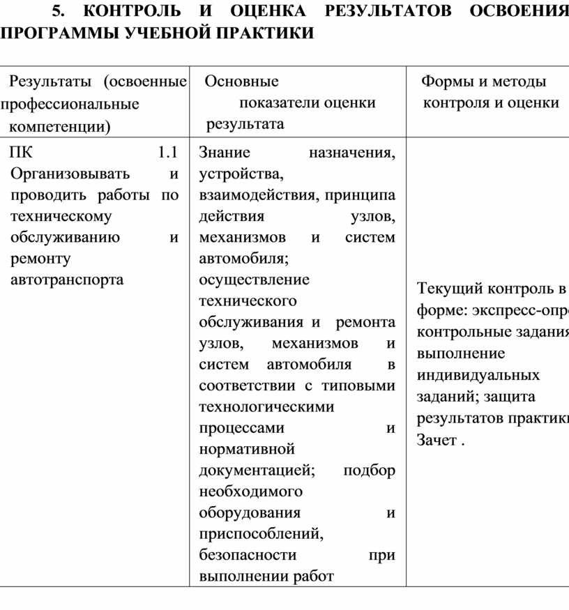 5. Контроль и оценка результатов освоения программы учеб- 14 ной практики