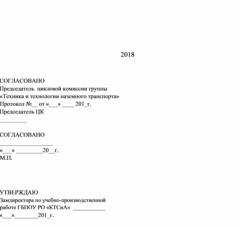 Председатель цикловой комиссии группы «Техника и технологии наземного транспорта» Протокол №__ от «___» ____ 201_г.