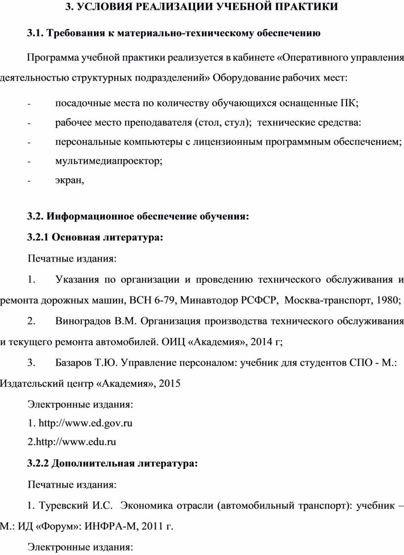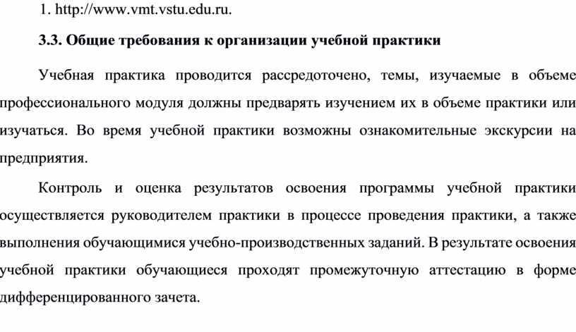 3.3. Общие требования к организации учебной практики