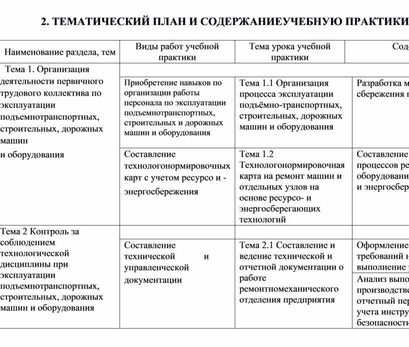 2. ТЕМАТИЧЕСКИЙ ПЛАН И СОДЕРЖАНИЕУЧЕБНУЮ ПРАКТИКИ