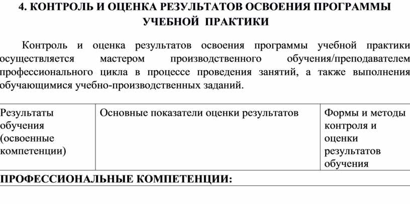 4. Контроль и оценка результатов освоения учебной практики 11