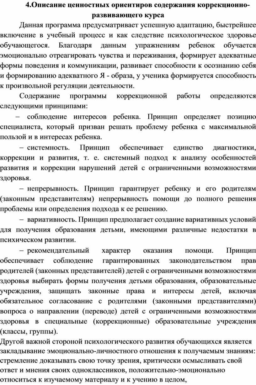 4.Описание ценностных ориентиров содержания коррекционно-развивающего курса