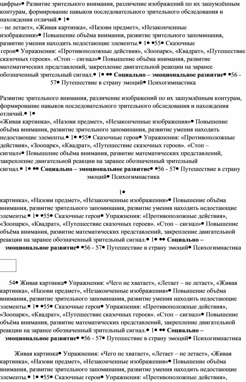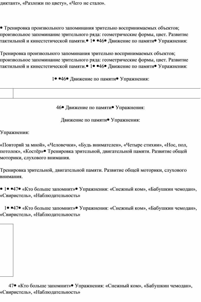 Упражнения: «Корректурная проба», «Найди отличия», «Быстрее нарисуй», «Запретное число», «Найди цифры» |