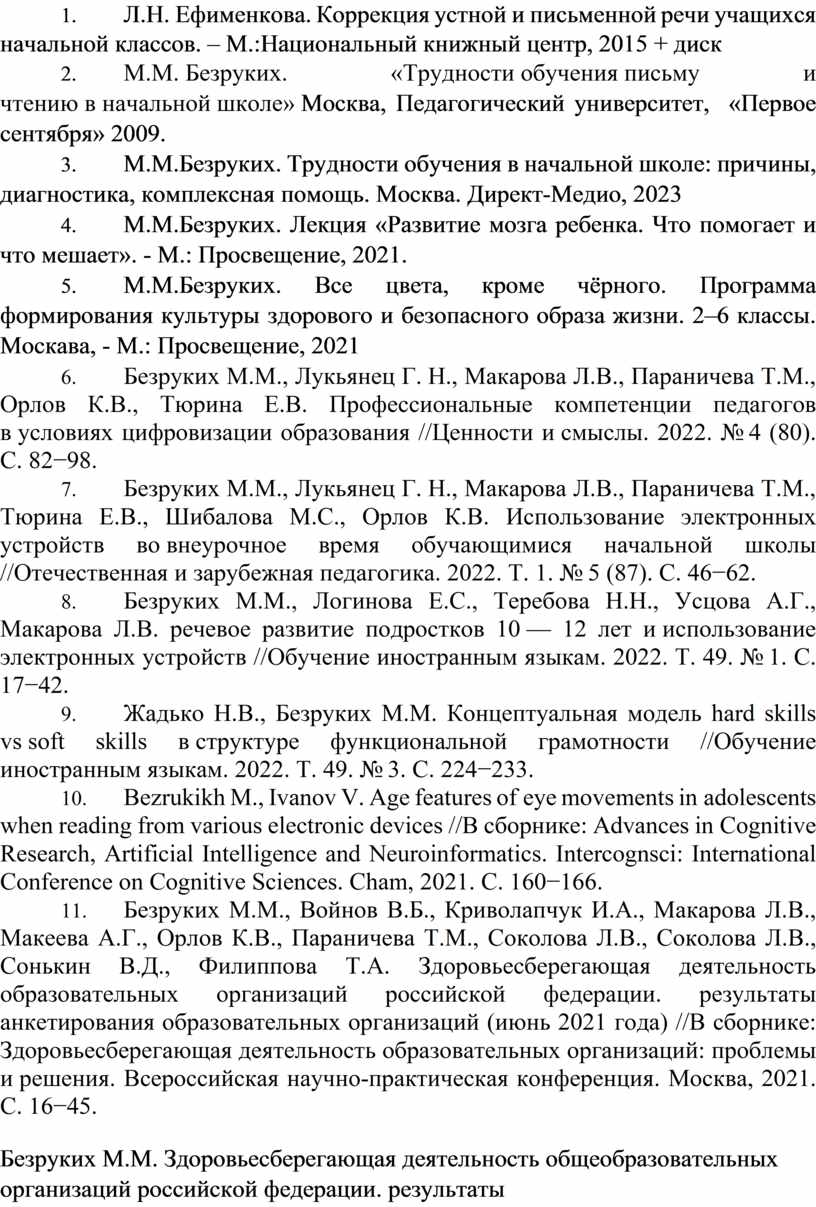 15. Безруких М.М., Логинова Е.С., Теребова Н.Н., Усцова А.Г., Макарова Л.В. речевое развитие подростков 10 — 12 лет и использование электронных устройств //Обучение иностранным языкам. 2022. Т. 49. № 1. С. 17−42.