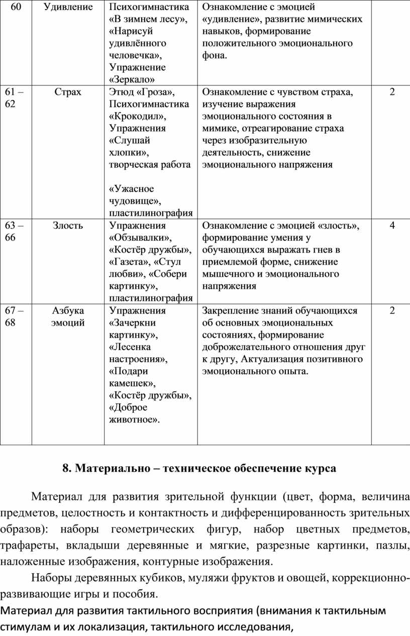 Коррекционный курс «Коррекционно-развивающие занятия» предполагает создание оптимальных условий познания ребенком каждого объекта в совокупности сенсорных свойств, качеств, признаков.