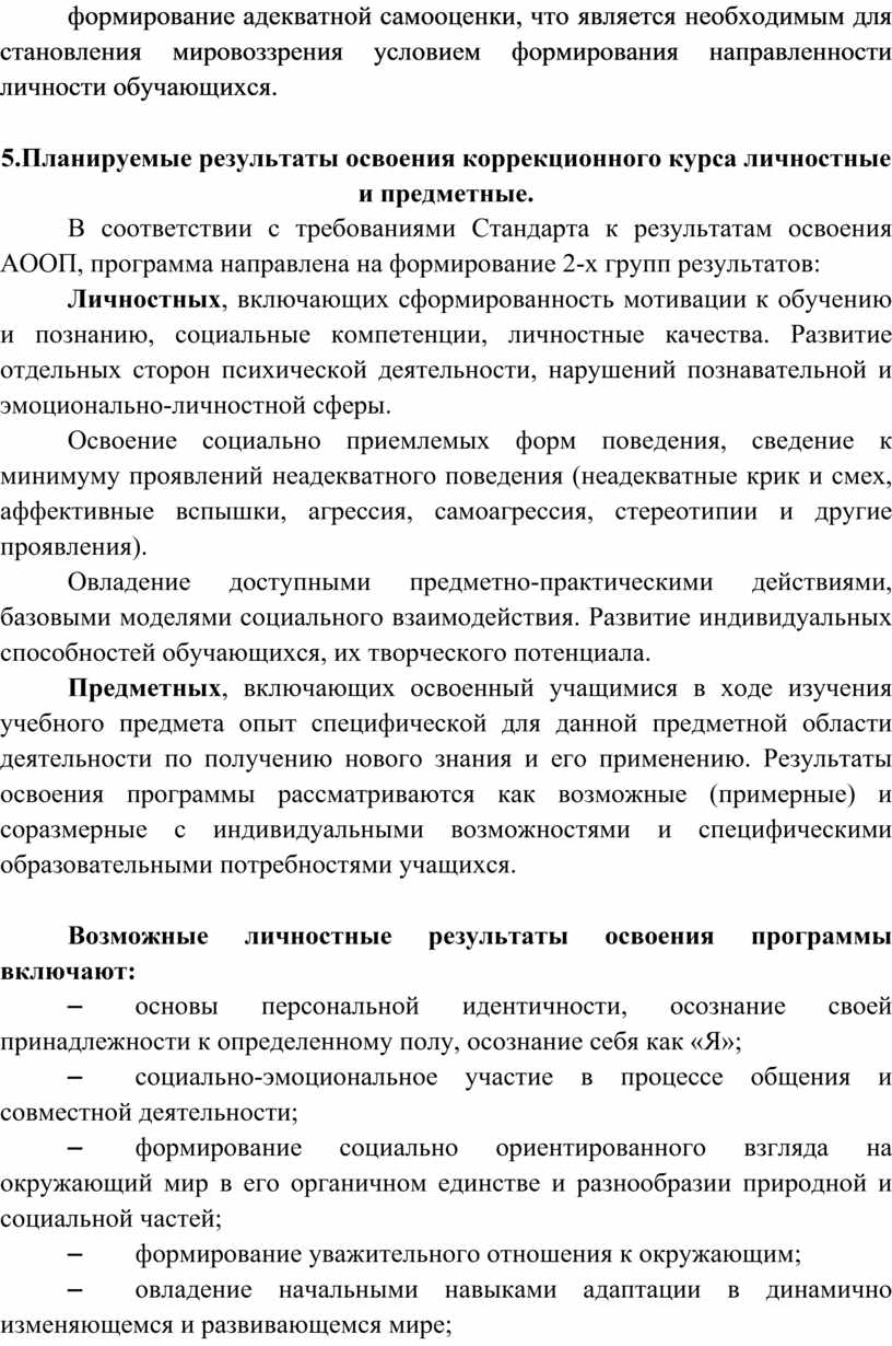 5.Планируемые результаты освоения коррекционного курса личностные и предметные.