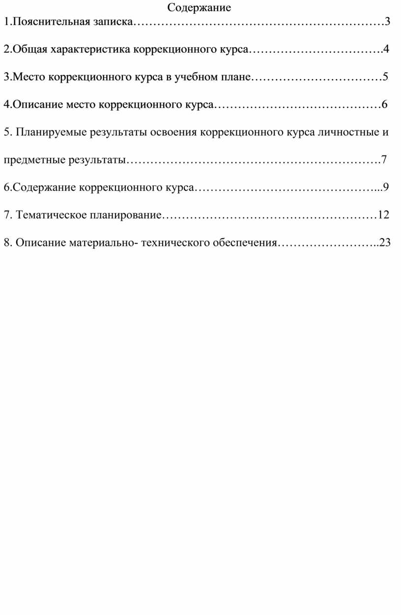 5. Планируемые результаты освоения коррекционного курса личностные и предметные результаты……………………………………………………….7