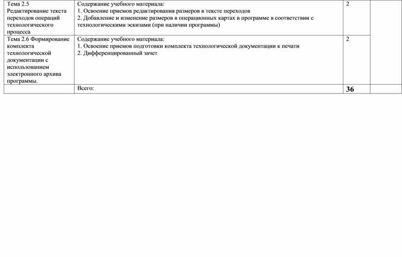 Тема 2.6 Формирование комплекта технологической документации с использованием электронного архива программы. |