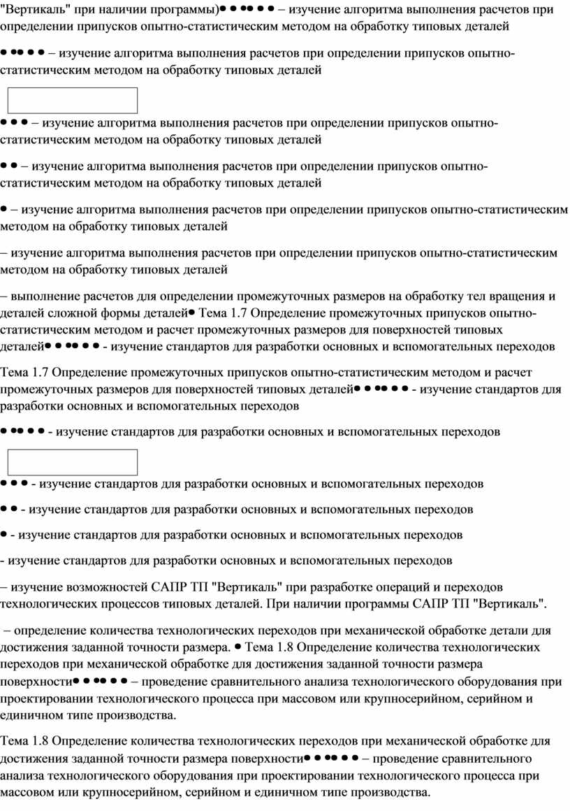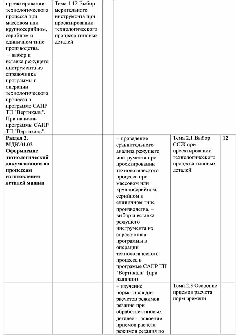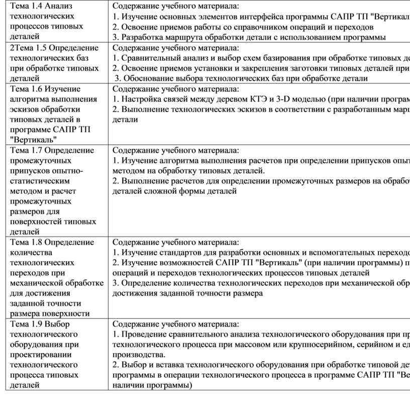 Содержание учебного материала: 1. Изучение стандартов для разработки основных и вспомогательных переходов 2. Изучение возможностей САПР ТП "Вертикаль" (при наличии программы) при разработке операций и переходов технологических процессов типовых деталей 3. Определение количества технологических переходов при механической обработке детали для достижения заданной точности размера |