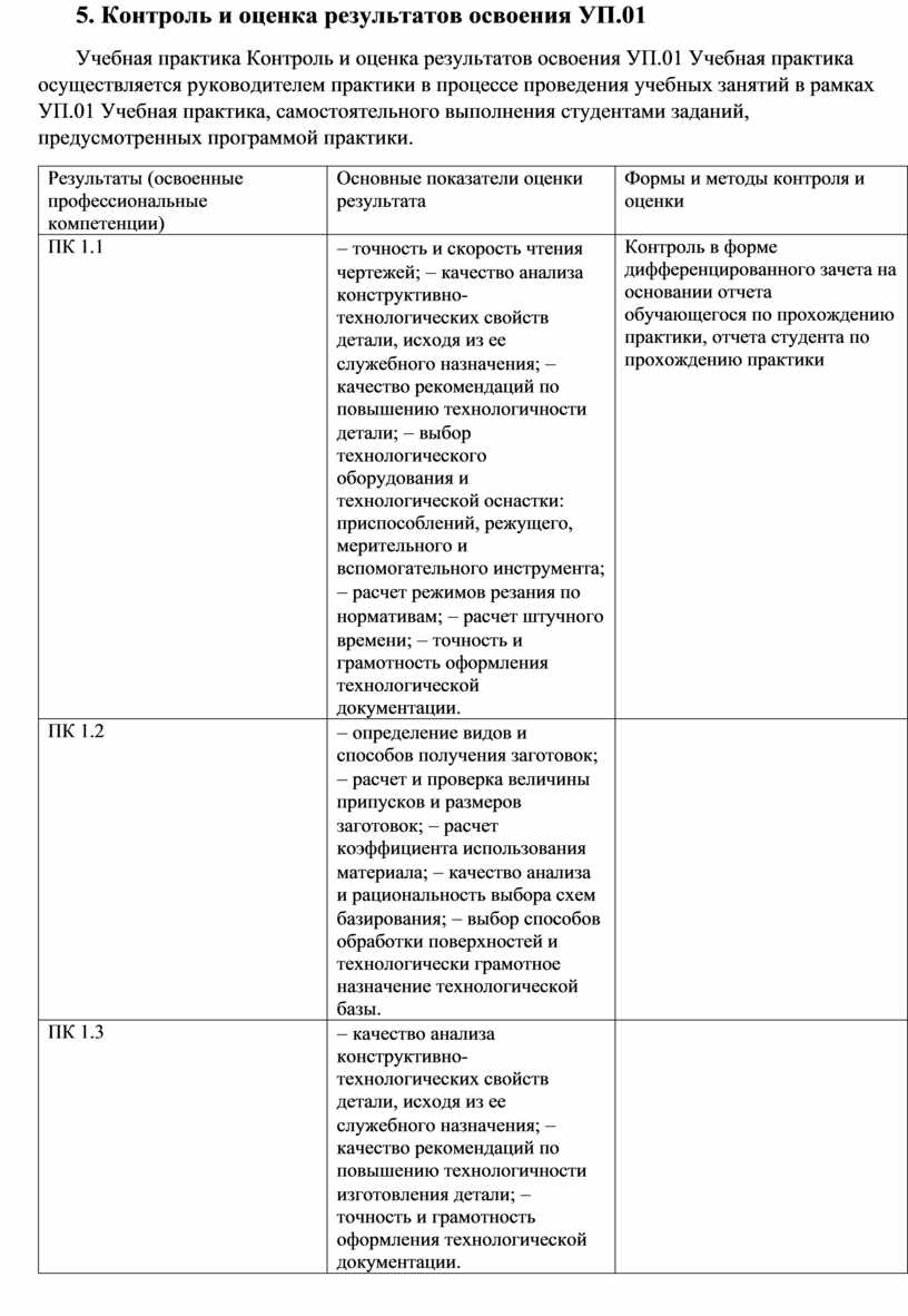 Контроль и оценка результатов освоения УП. 01 Учебная практика профессионального модуля ПМ.01 Разработка технологических процессов изготовления деталей машин |