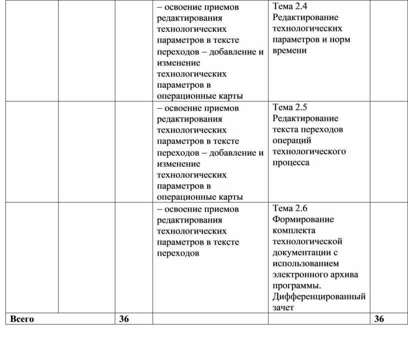 - освоение приемов редактирования технологических параметров в тексте переходов |