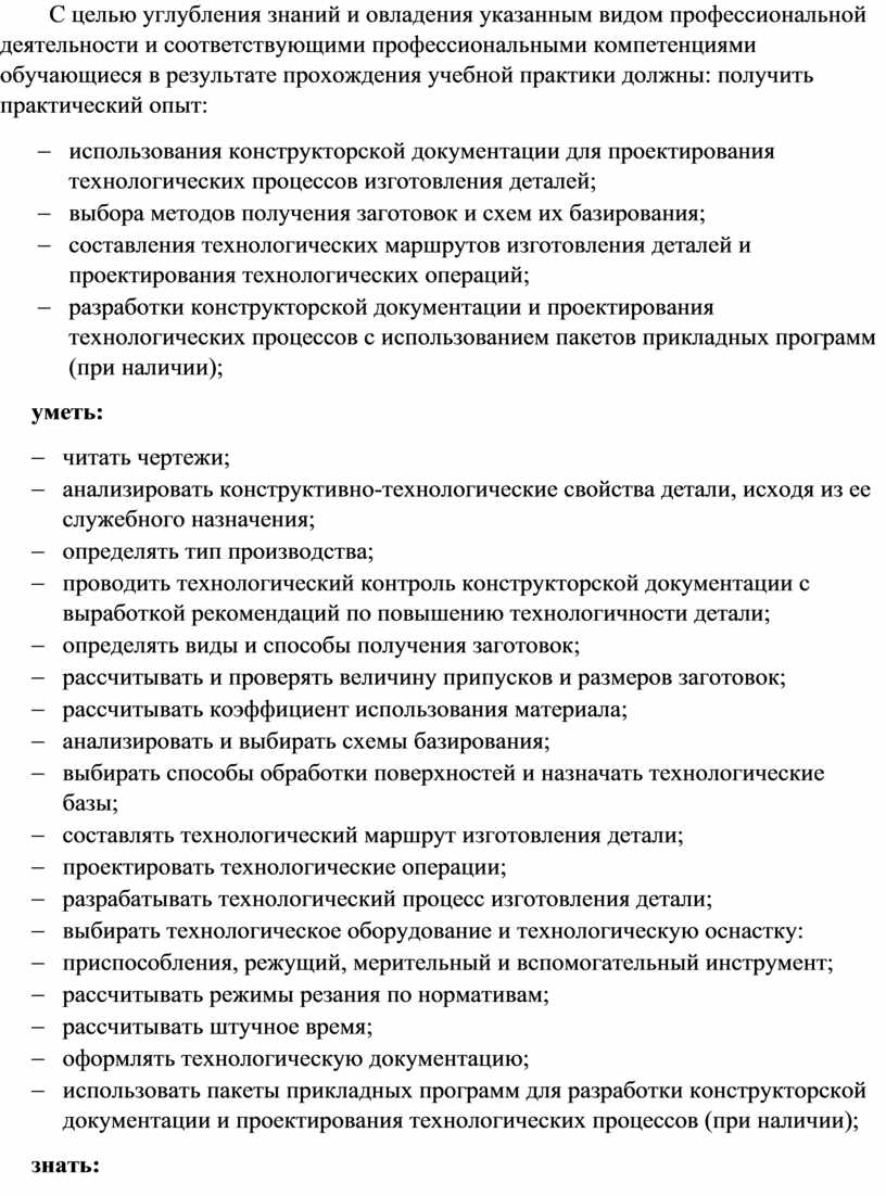 С целью углубления знаний и овладения указанным видом профессиональной деятельности и соответствующими профессиональными компетенциями обучающиеся в результате прохождения учебной практики должны: получить практический опыт: