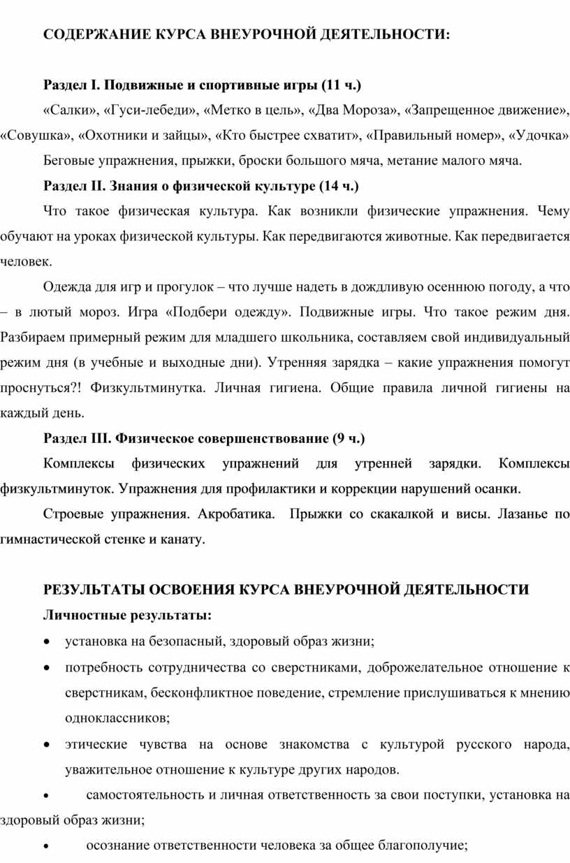 РЕЗУЛЬТАТЫ ОСВОЕНИЯ КУРСА ВНЕУРОЧНОЙ ДЕЯТЕЛЬНОСТИ