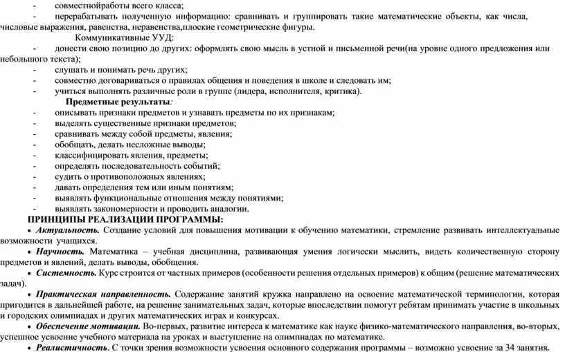 · Практическая направленность. Содержание занятий кружка направлено на освоение математической терминологии, которая пригодится в дальнейшей работе, на решение занимательных задач, которые впоследствии помогут ребятам принимать участие в школьных и городских олимпиадах и других математических играх и конкурсах.